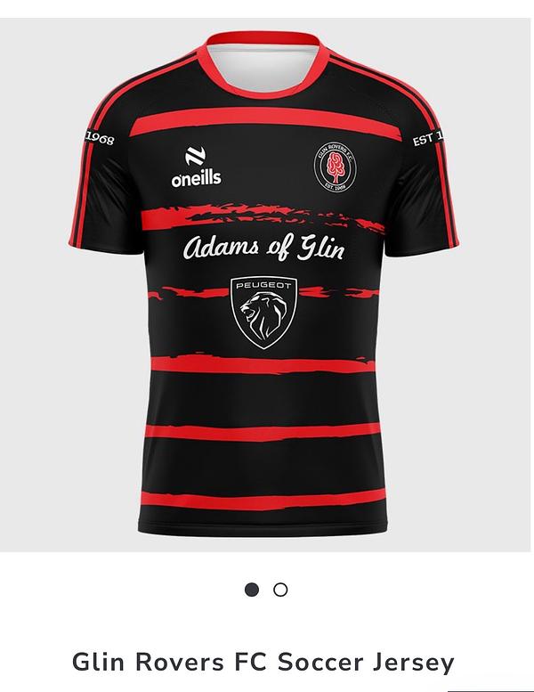 The new Adams of Glin Main Peugeot Dealer for Limerick and North Kerry sponsored A jersey is available to purchase from the Glin Rovers O'Neills Sportswear club shop